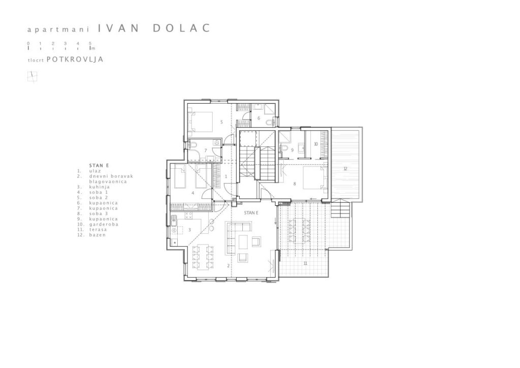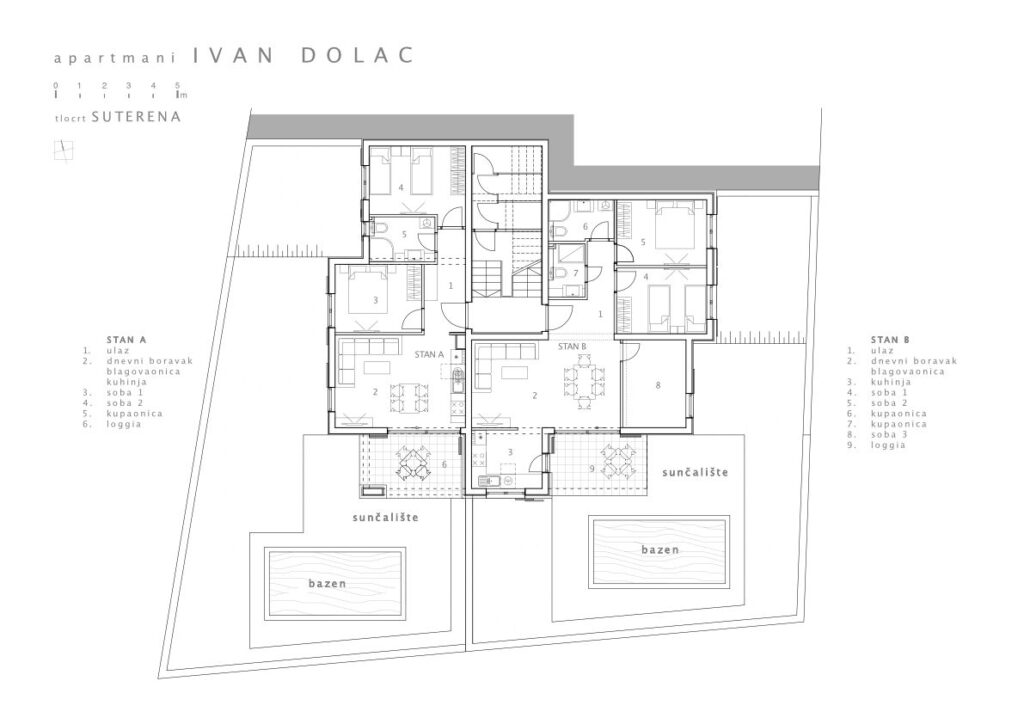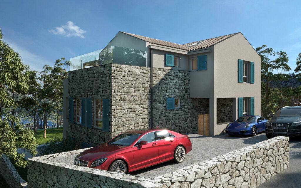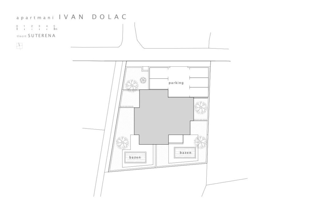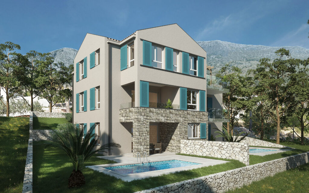 Oblikovana u skladu s prostronim planom u suvremenoj intrerpretaciji lokalne arhitekture. Na čestici su planirana i dva bazena za stanove u prizemlju dok je za penthouse bazen osiguran na krovnoj terasi.